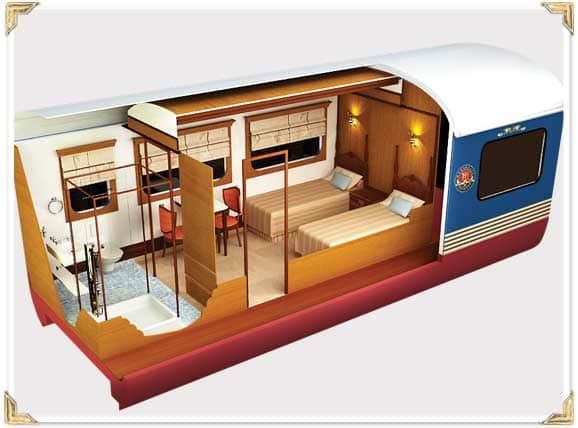 The elegantly designed train treats you like royalty, offering breakfast in bed among other luxuries. Possibly the least extravagant of the luxury trains on our list, as it lacks a few minor perks like free alcohol and premium cabins. Nonetheless, this renders it a more affordable option. The Golden Chariot operates from October to March, offering three distinct train packages, as listed below.